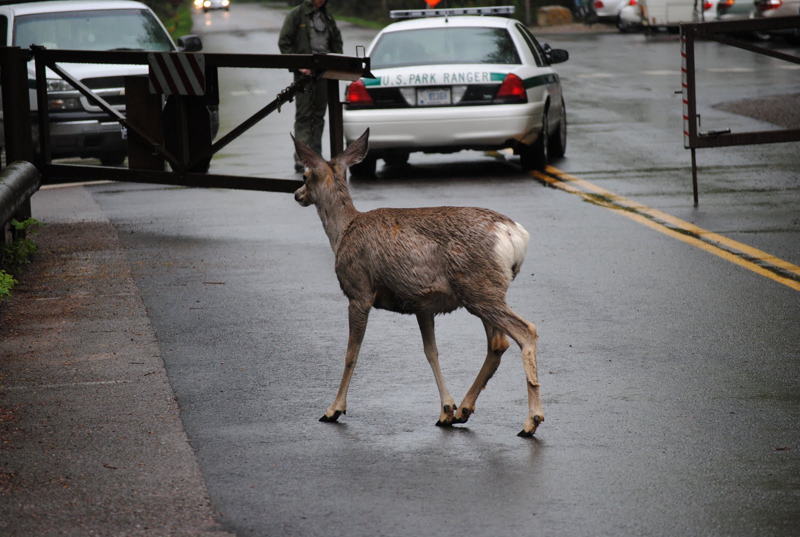 We thanked some of the park employees for insuring that this deer was convinced to come out for a drink of water. It had its drink and then meandered off through the woods and the parking lot.